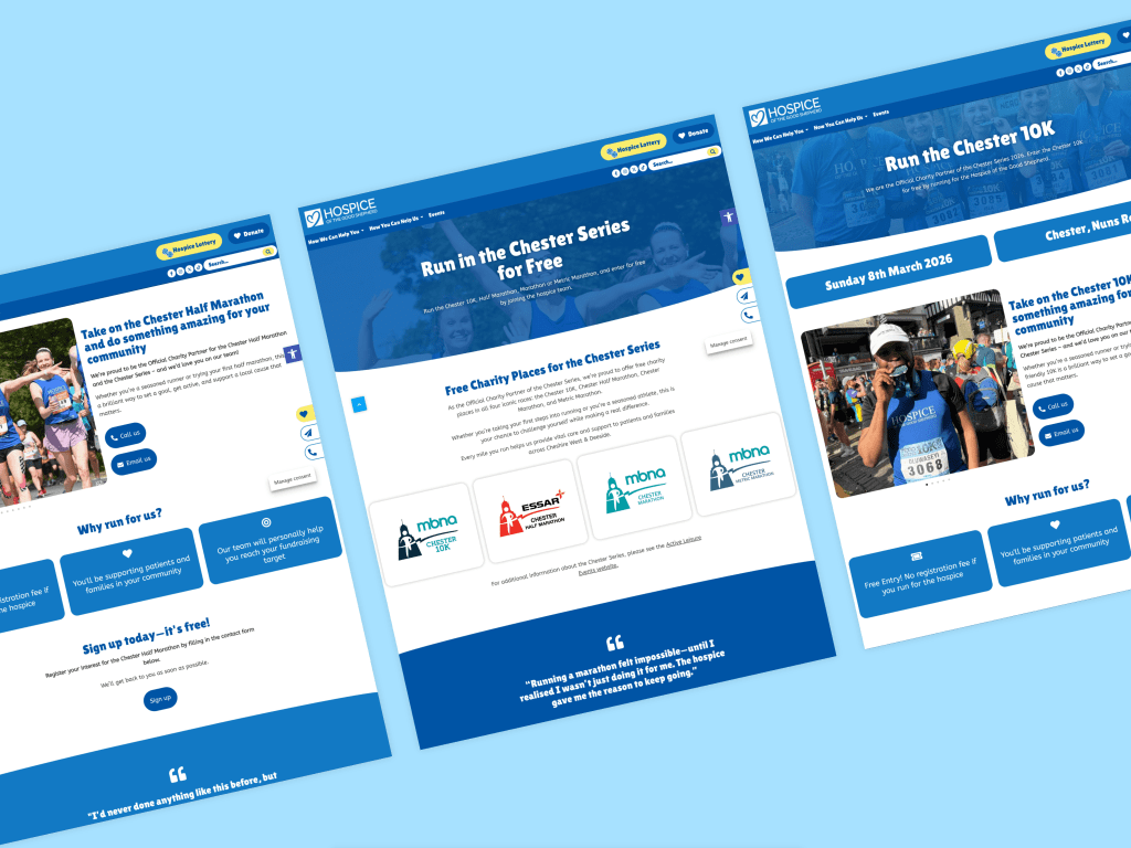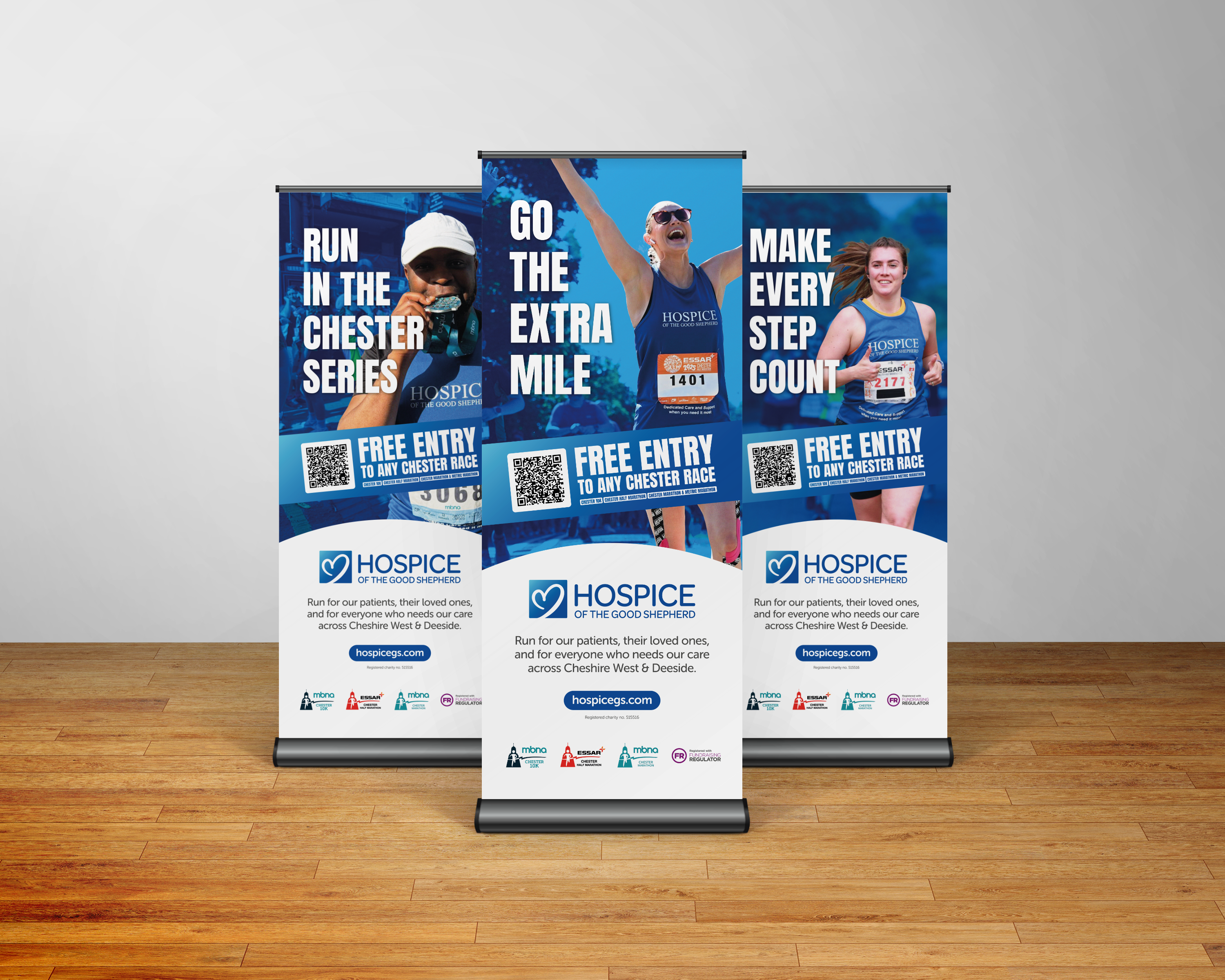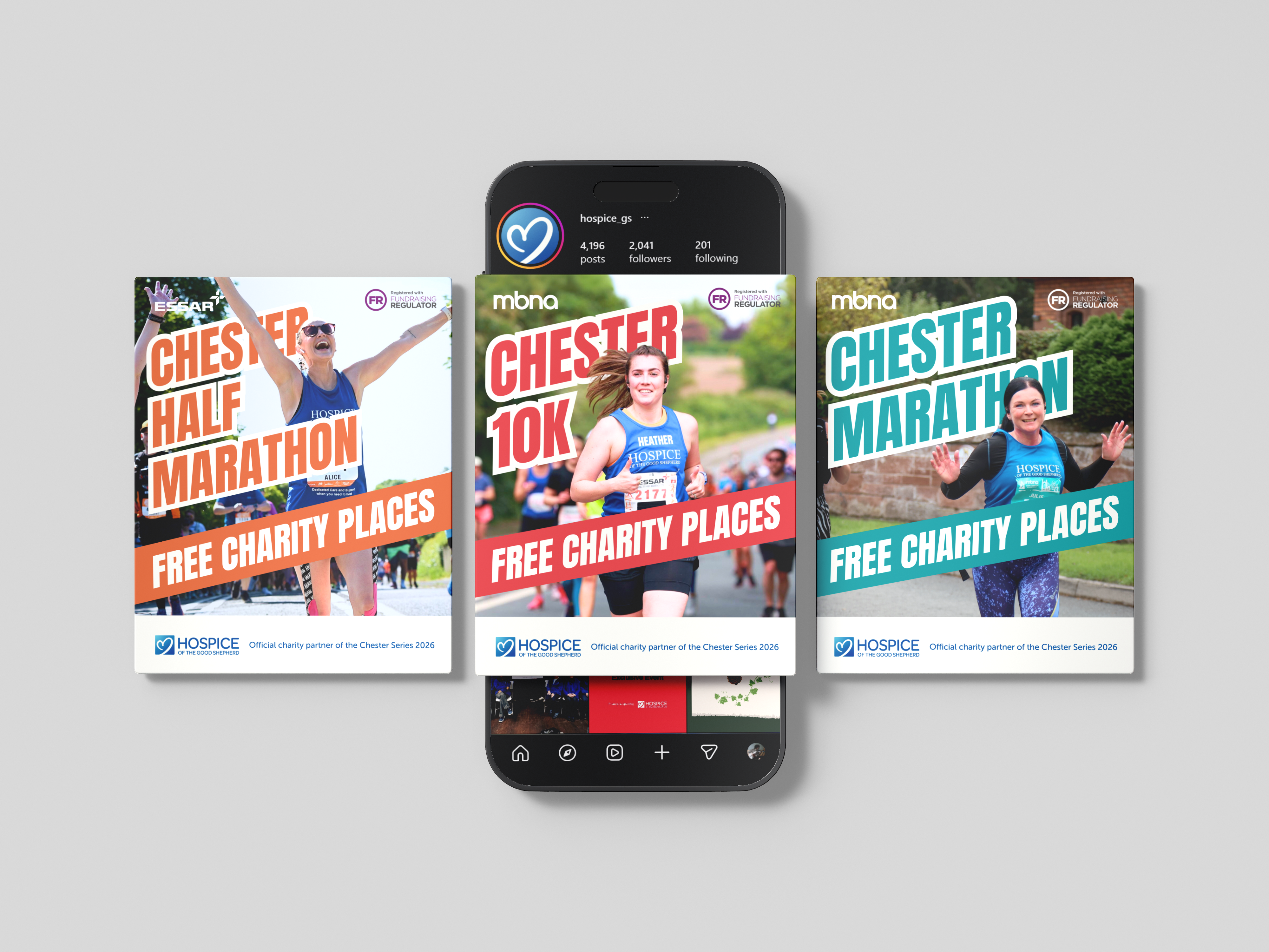Multi-channel marketing collateral for the Hospice of the Good Shepherd’s charity of the year partnership with the Chester Series 2026.
